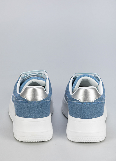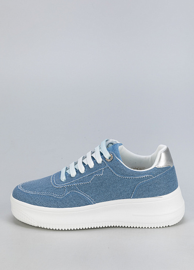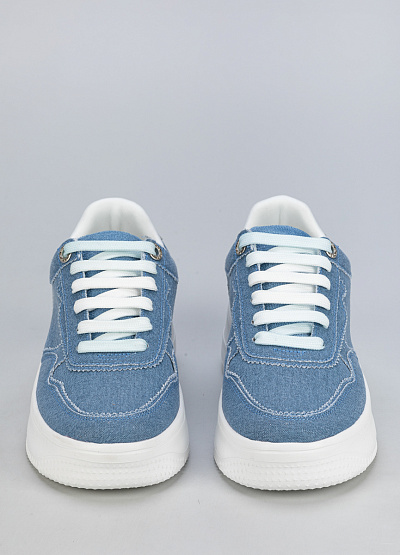 • Женские джинсовые кеды для повседневного образа. Модель выполнена в модном голубом цвете с контрастной белой подошвой и серебристыми вставками на пятке, что придает обуви свежий и современный вид. Идеально подходят для прогулок, путешествий и активного отдыха.