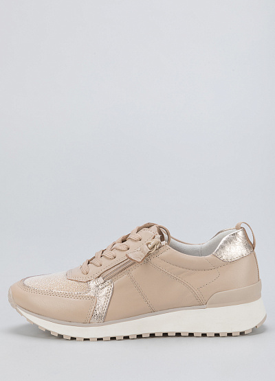 • Женские кроссовки из натуральной кожи от бренда Caprice. Закругленный носок. Открытая шнуровка в тон. Боковая молния. Плоская рифленая подошва.