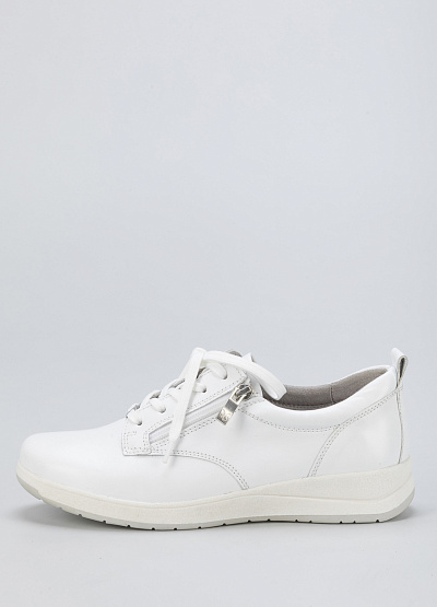 • Женские кроссовки из натуральной кожи от бренда Caprice. Закругленный носок. Открытая шнуровка в тон. Боковая молния. Петли для подтягивания сзади. Плоская рифленая подошва.