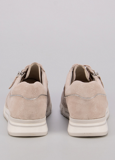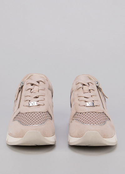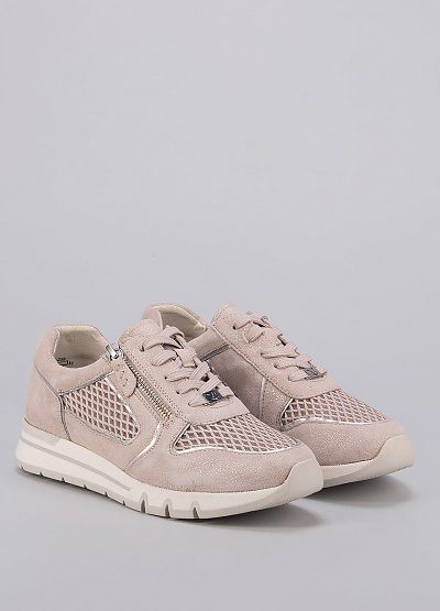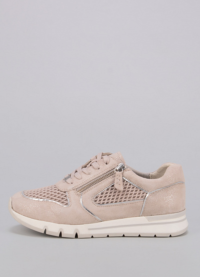 • Женские кроссовки из натуральной кожи и текстиля от бренда Caprice. Закругленный носок. Открытая шнуровка в тон. Боковая молния. Плоская рифленая подошва.