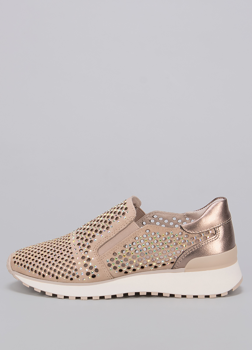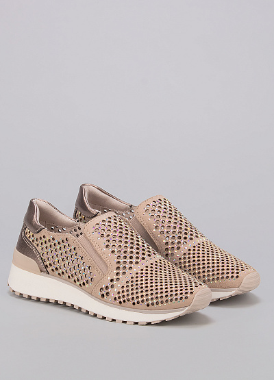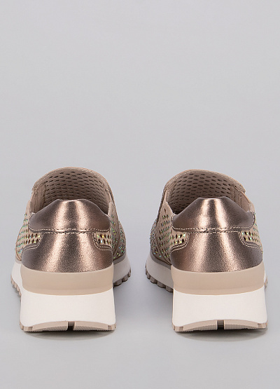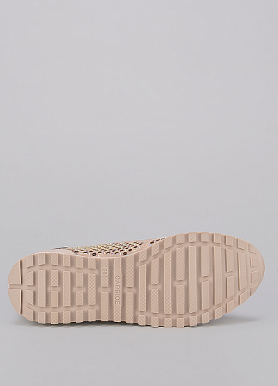 • Женские кроссовки из натуральной кожи от бренда Caprice. Закругленный носок. Эластичные вставки по бокам. Сквозная перфорация. Плоская рифленая подошва.