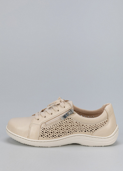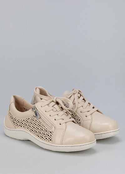 • Женские кроссовки бежевого цвета из натуральной кожи от бренда Caprice. В них вы почувствуете легкость, комфорт и поддержку для достижения высоких результатов. Модель на шнуровке дополнена молнией сбоку. Закругленный носок. Широкая рифленая подошва. Стиль кэжл отлично сочетаются с любыми демисезонными, летними и весенними нарядами. Сквозная перфорация позволит стопе дышать целый день и отводить лишнюю влагу.