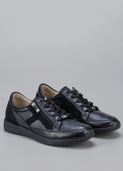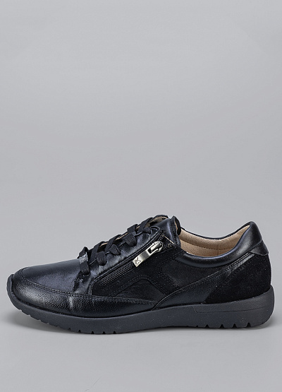 • Женские кроссовки черного цвета из натуральной кожи от бренда Caprice. Модель гарантирует идеальную поддержку стопы, делая каждую вашу прогулку легкой и комфортной. Их элегантный дизайн подчеркнет вашу индивидуальность и стиль, а молния сблку добавит комфорта при надевании.