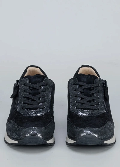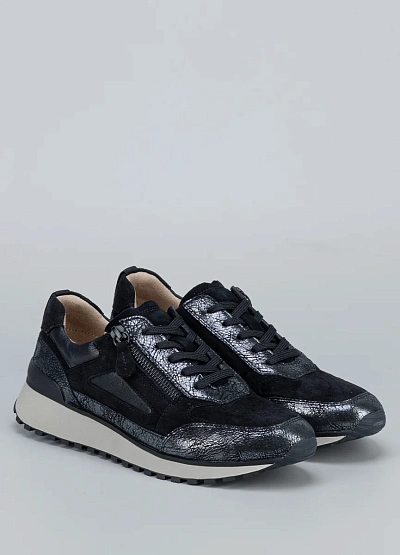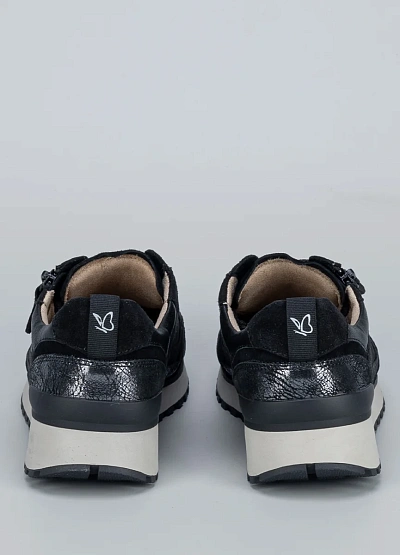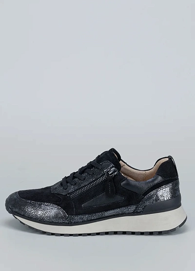 Модель с серебристыми вставками и замшевыми элементами создаёт модный акцент. Удобная подошва обеспечивает мягкость и устойчивость.