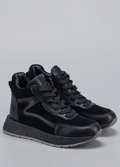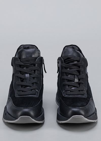 • Женские кроссовки черного цвета из композитной кожи и замши от бренда Franco Manatti. В них вы почувствуете легкость, комфорт и поддержку для достижения высоких результатов. Модель на шнуровке. Заостренный носок. Широкая подошва. Модная расцветка и стиль кэжуал отлично сочетаются с любыми демисезонными нарядами.