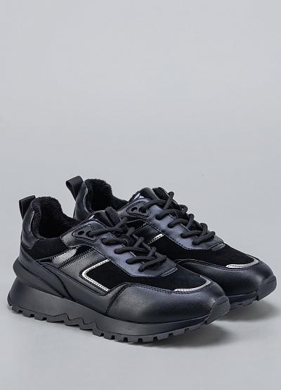 • Женские кроссовки из композитной кожи и замши черного цвета от бренда Franco Manatti. В них вы почувствуете легкость, комфорт и поддержку для достижения высоких результатов. Модель на шнуровке. Закругленный носок. Широкая рифленая подошва. Петли для подтягивания сзади. Модная расцветка и стиль кэжл отлично сочетаются с любыми демисезонными, летними и весенними нарядами.