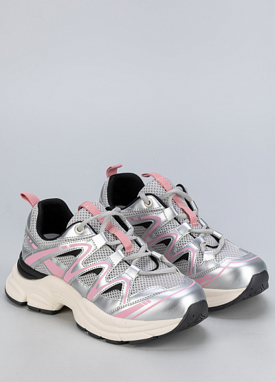 • Эти стильные женские и ультрамодные кроссовки сочетают в себе трендовый массивный силуэт и эффектный серебристо-розовый дизайн. Верх выполнен из комбинации дышащего текстиля и глянцевых металлизированных вставок, что делает модель легкой и комфортной. Утолщенная подошва обеспечивает амортизацию и комфорт при ходьбе.