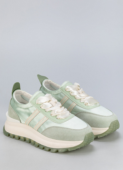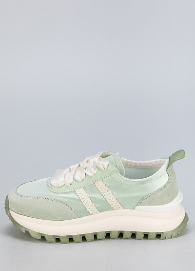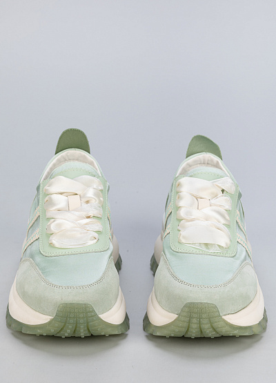 • Эти нежные женские кроссовки в пастельном мятном оттенке идеально подойдут для создания лёгкого и женственного образа. Верх выполнен из сочетания замши и сатина, а атласные шнурки придают обуви утончённый вид. Рельефная подошва обеспечивает отличное сцепление с поверхностью и комфорт при ходьбе.