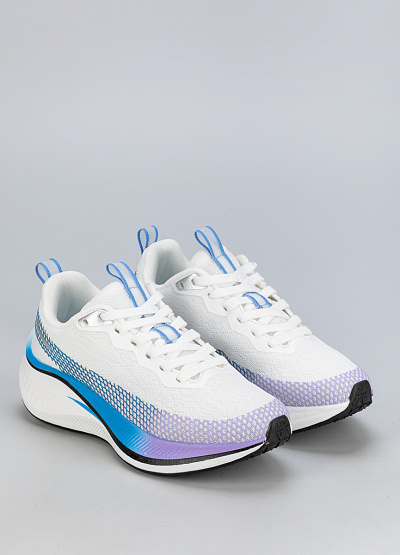 • Лёгкие и стильные спортивные кроссовки для активных девушек. Верх выполнен из дышащего текстиля, обеспечивающего комфорт даже при интенсивных нагрузках. Эффектный градиентный дизайн с переходом от белого к голубому и сиреневому оттенку придаёт обуви динамичный и современный вид.
