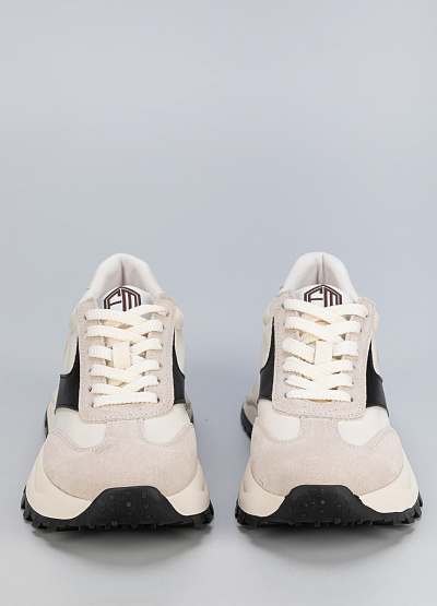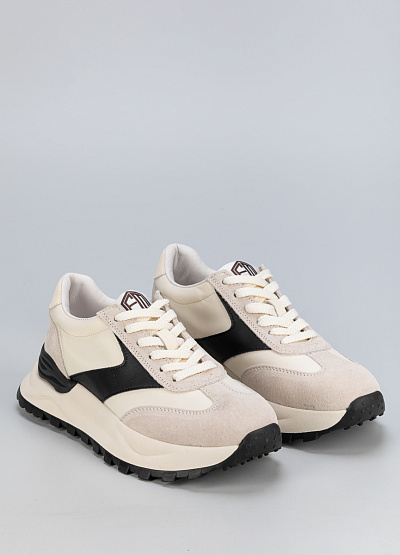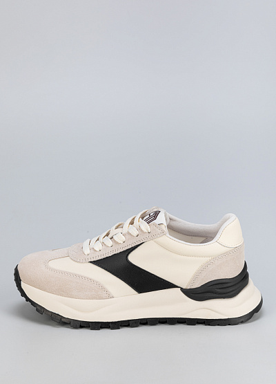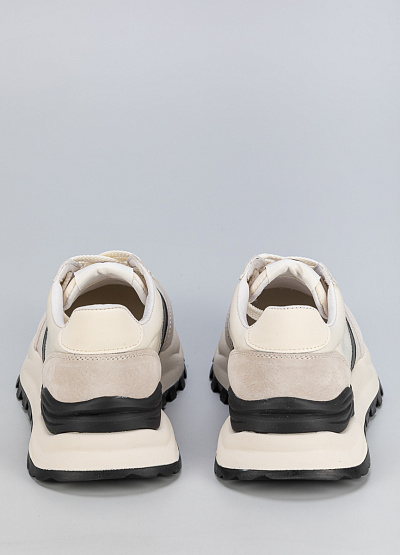 • Мужские бежевые кроссовки с черными акцентами, выполненные из кожи и замши, в спортивном стиле, подходят для повседневной носки и активного отдыха.