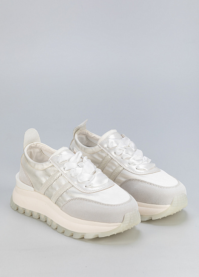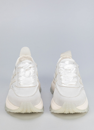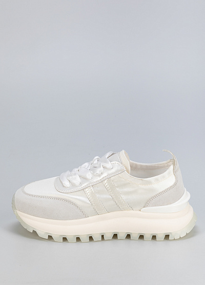 • Женские белые кроссовки из текстиля и замши в спортивном стиле, подходят для повседневной носки и активного отдыха.