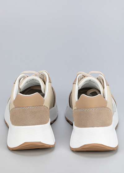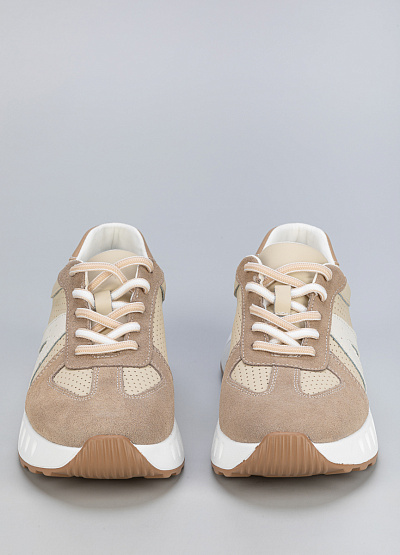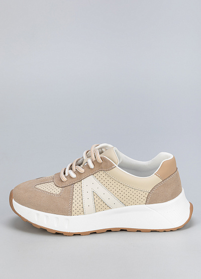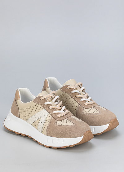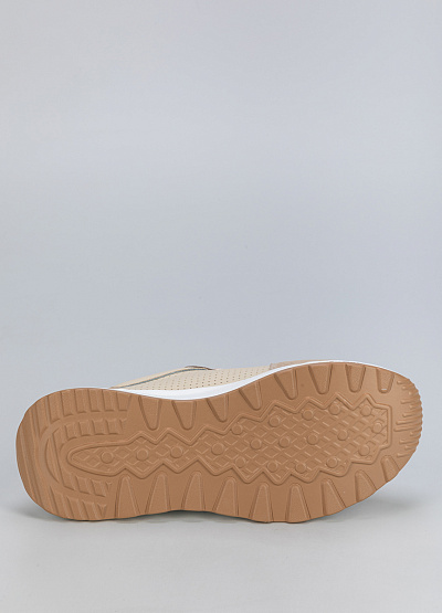 • Женские кроссовки бежевого цвета из кожи и замши, в стиле casual, подходят для активного отдыха и повседневного образа.