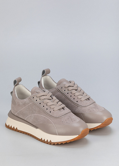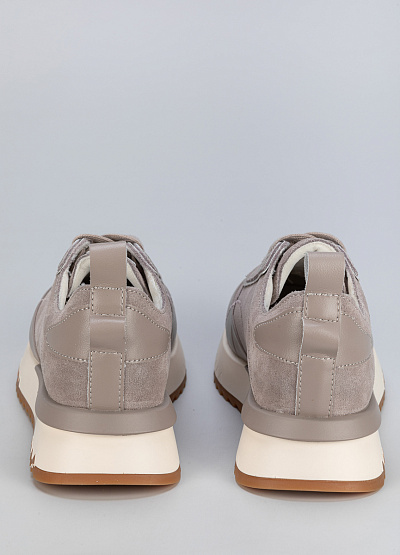 • Женские серые кроссовки из замши и экокожи в стиле casual, подходят для повседневной носки и активного отдыха.