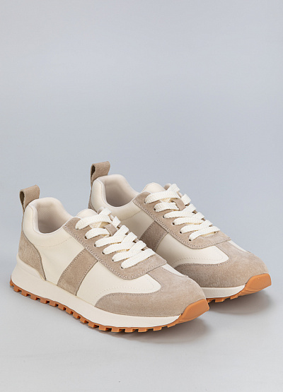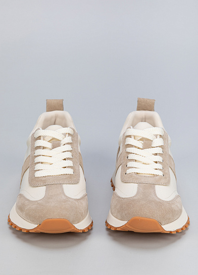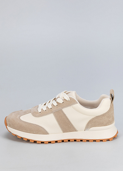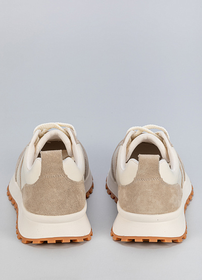 • Мужские бежево-коричневые кроссовки из замши и текстиля в стиле casual, подходят для повседневной носки и активного отдыха.