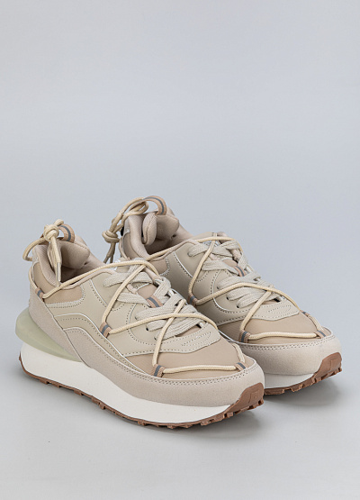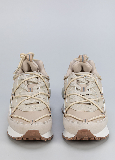 • Женские кроссовки в светло-бежевом цвете с оригинальной шнуровкой и акцентами в спортивном стиле — универсальный выбор для повседневной носки. Модель сочетает практичность, комфорт и современный силуэт.