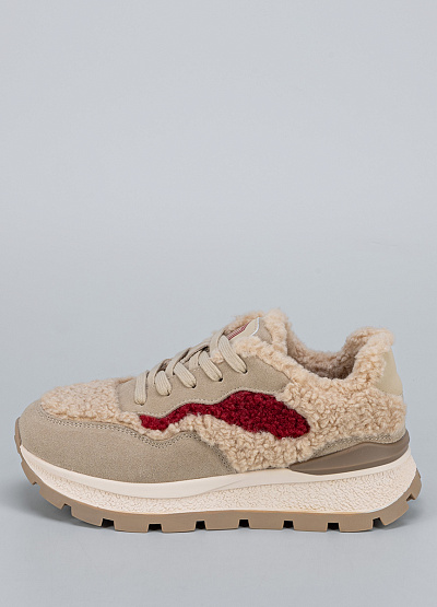 • Женские кроссовки Franco Manatti — уютная и стильная модель, созданная для комфорта в прохладный сезон. Верх выполнен из мягкого замша и тёплого искусственного меха, что придаёт образу оригинальность и обеспечивает тепло в любую погоду. Контрастная бордовая вставка добавляет акцент и делает дизайн более выразительным. Толстая подошва с рельефным протектором гарантирует устойчивость и удобство при ходьбе.