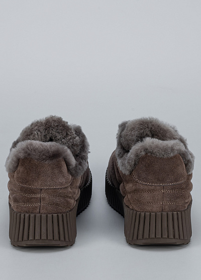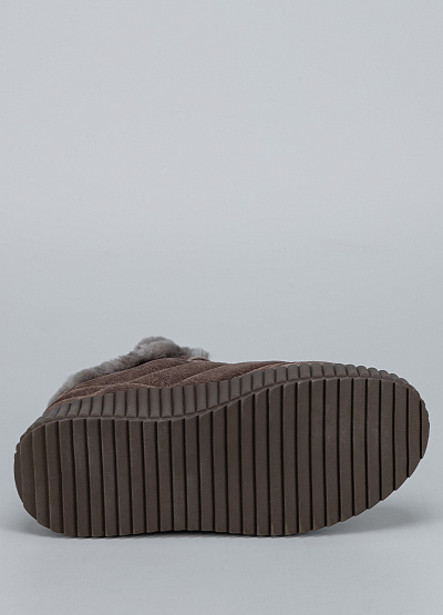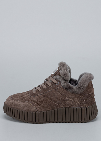 • Женские зимние кроссовки Franco Manatti в насыщенном кофейном оттенке — модное решение для холодного времени года. Выполненные из мягкой натуральной замши с простроченным дизайном, они сочетают в себе уют, тепло и современный стиль. Внутренняя отделка из плотного меха сохраняет комфорт даже при низких температурах, а высокая рифлёная подошва обеспечивает устойчивость и защищает от холода.