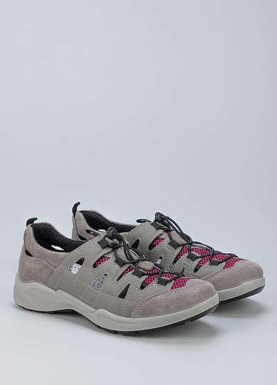 • Женские кроссовки от бренда Keddo. Открытая шнуровка на кулиске. Закругленный носок. Сквозная перфорация. Петли для подтягивания сзади. Массивная рифленая подошва.