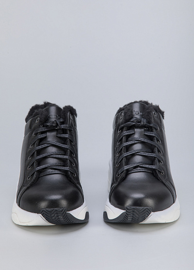 • Женские кроссовки из натуральной кожи от бренда Inwood. Закругленный носок. Открытая шнуровка в тон. Тисненый логотип на язычке. Боковая молния. Петли для подтягивания сзади. Массивная рифленая подошва.
