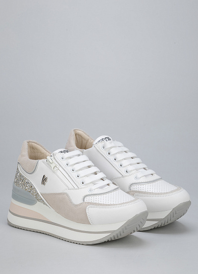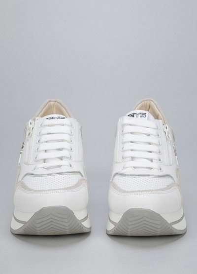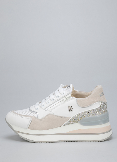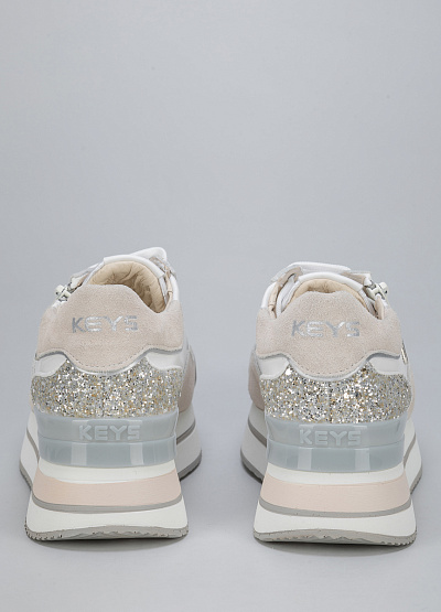 • Женские кроссовки из натуральной кожи от бренда Keys. Закругленный носок. Открытая шнуровка в тон. Боковая молния. Логотип сбоку, на язычке и пятке. Широкая рифленая подошва на танкетке.