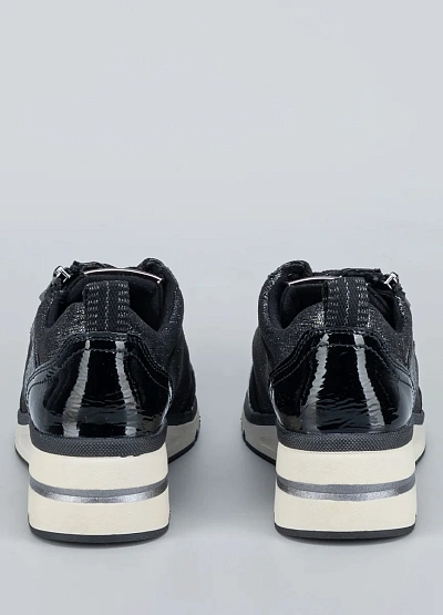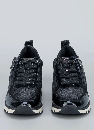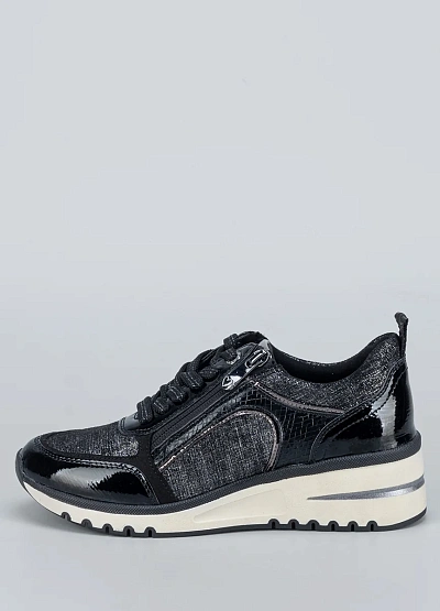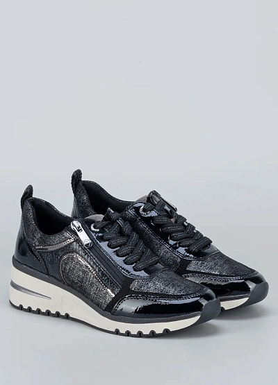 • Эти женские кроссовки Marco Tozzi сочетают в себе городской стиль и спортивный комфорт. Элегантный микс текстур — от лаковой кожи до ткани с металлическим отливом — придаёт модели выразительный и современный вид. Контрастная подошва с амортизирующим эффектом добавляет комфорта при ходьбе и отлично подходит для длительных прогулок. Детали в виде боковой молнии и декоративной текстуры делают эту модель стильным акцентом в повседневном образе.