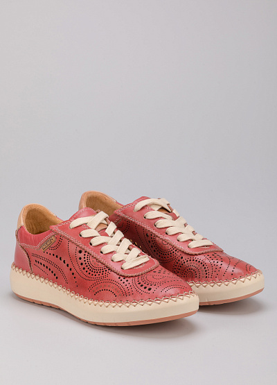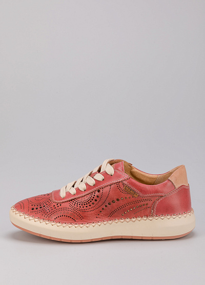 • Женские кроссовки из натуральной кожи от бренда Pikolinos. Открытая шнуровка в тон. Перфорация. Плоская рифленая подошва.