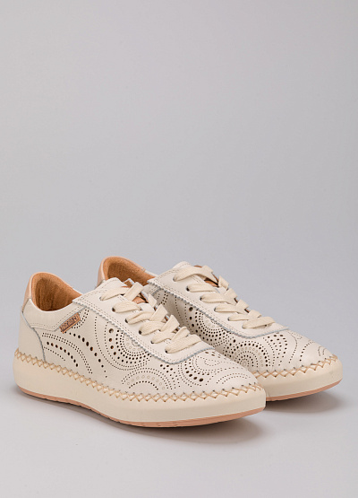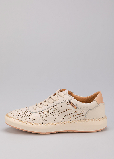 • Женские кроссовки из натуральной кожи от бренда Pikolinos. Открытая шнуровка в тон. Перфорация. Плоская рифленая подошва.