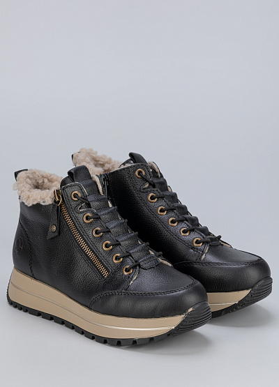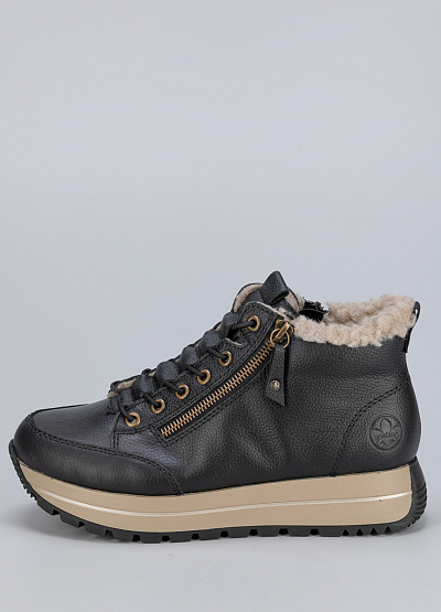 • Женские кроссовки от бренда Rieker в черном цвете. В них вы почувствуете легкость, комфорт и поддержку для достижения высоких результатов. Модель на шнуровке. Закругленный носок. Широкая рифленая подошва. Модный дизайн усилит характер и подчеркнет индивидуальность.