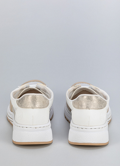 — Золотистые вставки и замша в бежевом оттенке придают образу элегантности