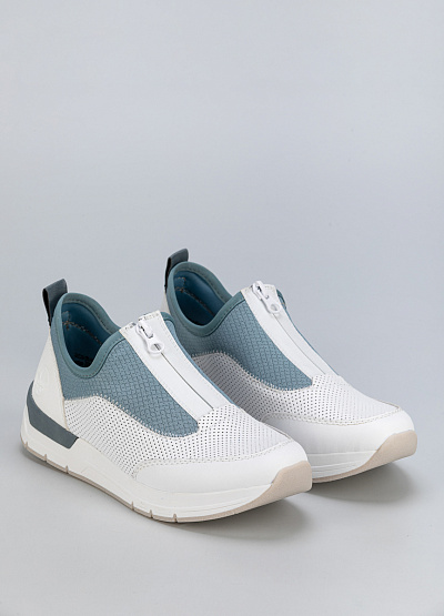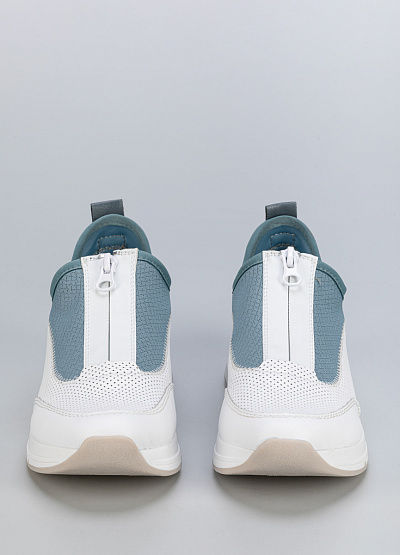 • Минимализм и свежесть – женские кроссовки в бело-голубом исполнении.
