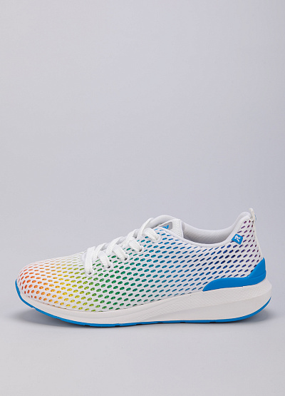 • Женские кроссовки от бренда Rieker. Закругленный носок. Открытая шнуровка в тон. Перфорация. Петли для подтягивания сзади. Плоская рифленая подошва.