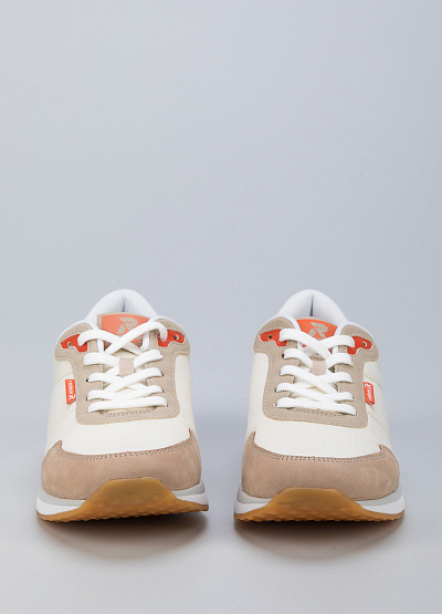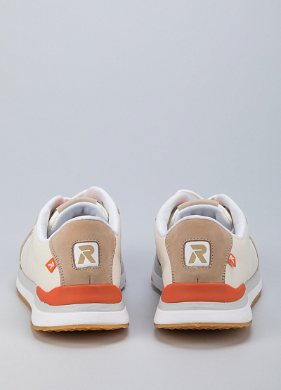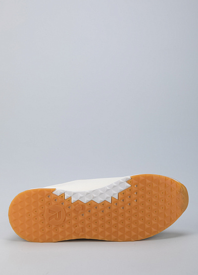 • Женские кроссовки из натуральной кожи и текстиля от бренда Rieker. Закругленный носок. Открытая шнуровка в тон. Язычок и пятка украшены логотипом. Плоская рифленая подошва.