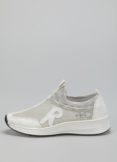 • Женские кроссовки бренда Rieker. Модель выполнена из эластичного текстиля и экокожи. Закрытый корпус на подъеме. Боковая сторона украшена логотипом. Декорированная выделка вдоль подъема. Массивная подошва.