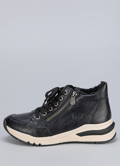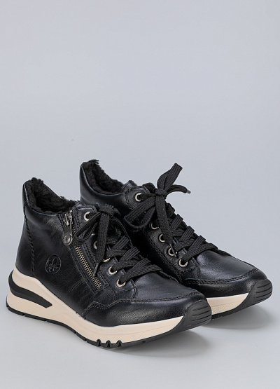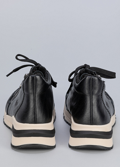 • Женские кроссовки из экокожи от бренда Rieker в черном цвете. В них вы почувствуете легкость, комфорт и поддержку для достижения высоких результатов. Модель на шнуровке. Удобная молния. Комфортная платформа. Закругленный носок. Широкая рифленая подошва. Модный дизайн усилит характер и подчеркнет индивидуальность.