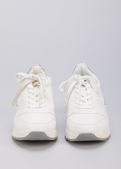 • Женские кроссовки от бренда Tamaris. Открытая шнуровка. Декорированная пятка. Рифленая подошва на танкетке.