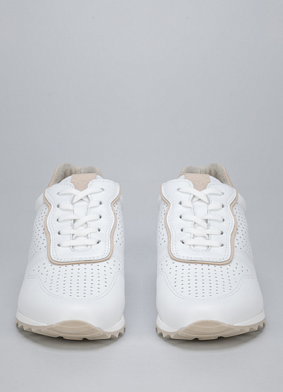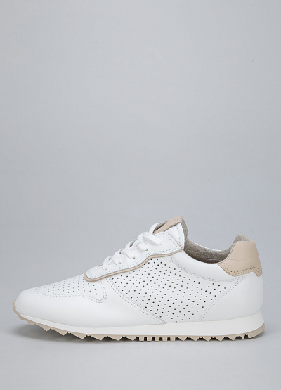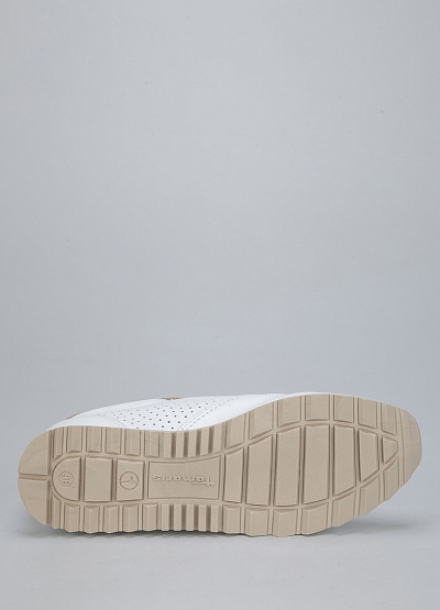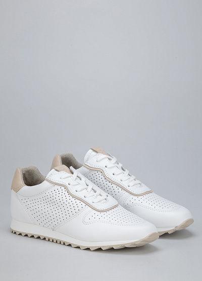• Женские кроссовки из натуральной кожи от бренда Tamaris. Закругленный носок. Открытая шнуровка в тон. Сквозная перфорация. Плоская рифленая подошва.