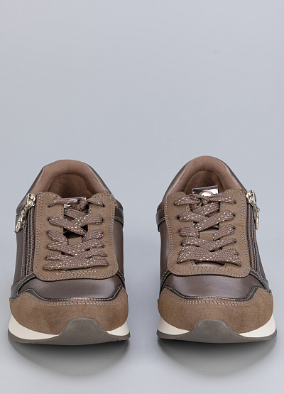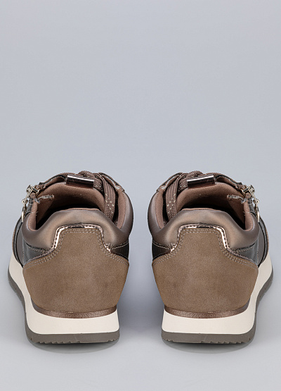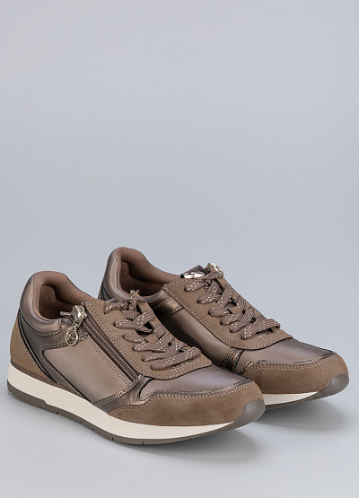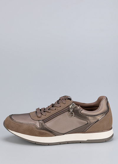• Женские кроссовки бежевого цвета из экокожи от бренда Tamaris. В них вы почувствуете легкость, комфорт и поддержку для достижения высоких результатов. Модель на шнуровке дополнена боковой молнией. Модная расцветка и стиль кэжуал отлично сочетаются с любыми демисезонными, летними и весенними нарядами.