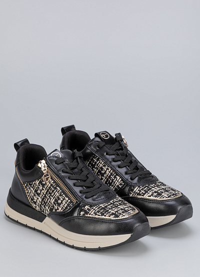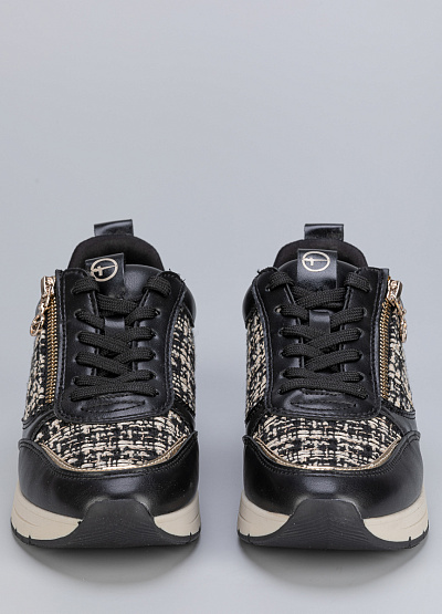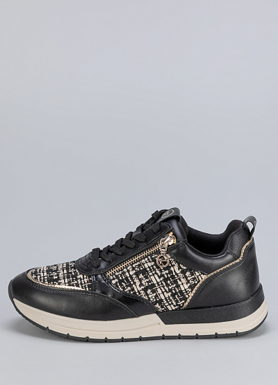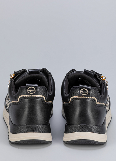 • Женские кроссовки черного цвета из экокожи от бренда Tamaris. В них вы почувствуете легкость, комфорт и поддержку для достижения высоких результатов. Открытая шнуровка дополнена боковой молнией. Модная расцветка с принтом и стиль кэжуал отлично сочетаются с любыми демисезонными, летними и весенними нарядами.