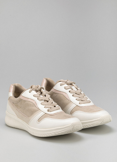 • Комбинированные женские кроссовки от бренда Tamaris. Закругленный носок. Открытая шнуровка в тон. Плоская рифленая подошва.