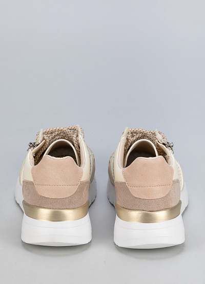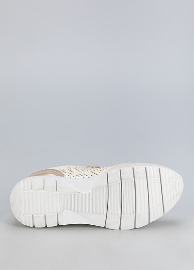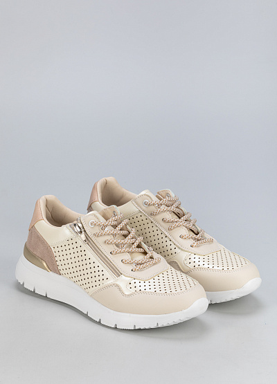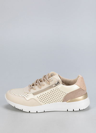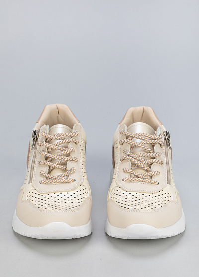 • Женские кроссовки золотистого цвета — сочетание элегантности и комфорта для повседневной носки. Выполненные в светлых тонах с изысканными вставками из замши и перфорацией, они обеспечивают легкость и отличную вентиляцию. Декоративная молния сбоку добавляет стильный акцент и облегчает надевание обуви.