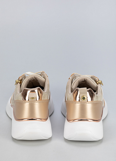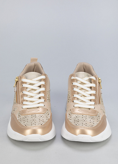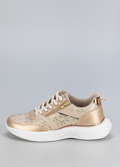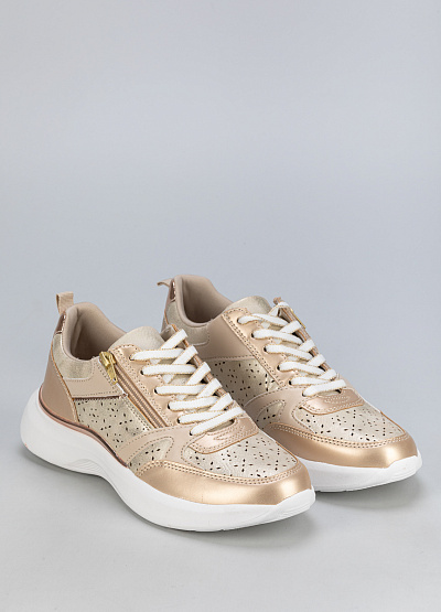 • Женские кроссовки — стильный и удобный вариант для повседневного ношения. Роскошное сочетание золотистых оттенков, мягких замшевых вставок и перфорированного дизайна делает эту модель идеальной для активных и стильных женщин. Удобная шнуровка дополняется функциональной боковой молнией для быстрого надевания.