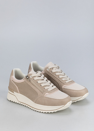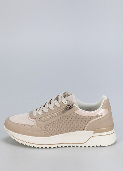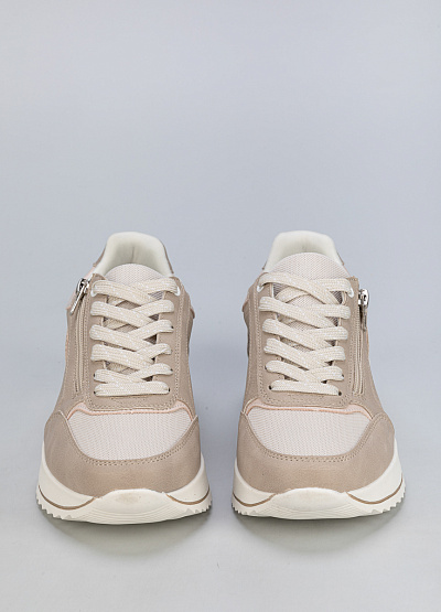 • Женские кроссовки — элегантная и комфортная модель для активного образа жизни. Стильное сочетание бежевых и розовых оттенков делает эту обувь универсальной для любого гардероба. Верх выполнен из мягкого материала с перфорацией, обеспечивающей отличную вентиляцию. Боковая молния добавляет удобства, позволяя легко снимать и надевать кроссовки.