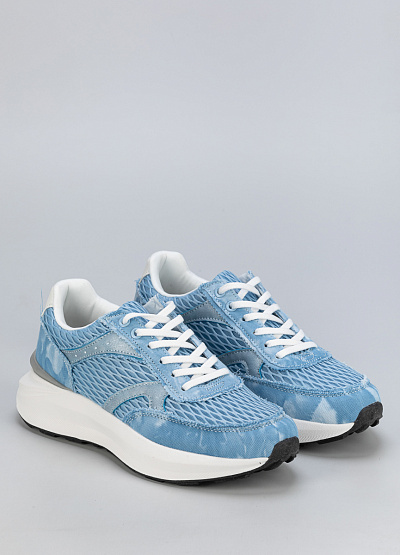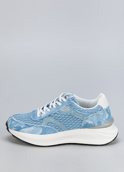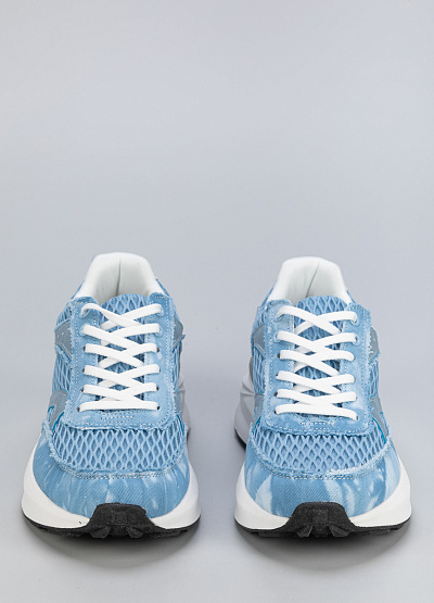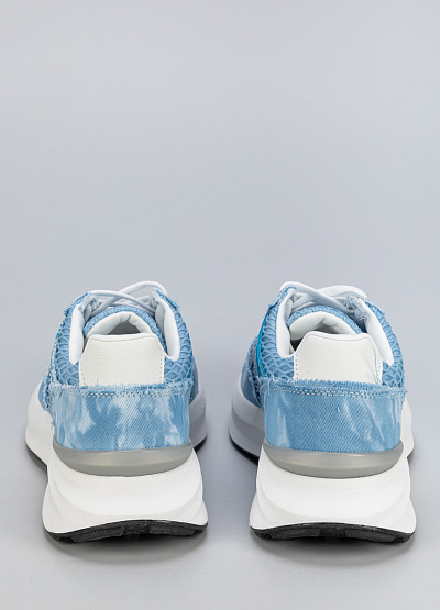 • Женские кроссовки в небесно-голубом оттенке с эффектом варёного денима созданы для яркого и смелого городского образа. Дизайн сочетает сетчатые вставки и необработанные края, придавая модели лёгкий винтажный характер в стиле street casual.