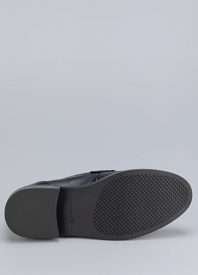 • Женские лоферы черного цвета из натуральной кожи от бренда Caprice. Модель с язычком дополнена ремешком в тон. Они хорошо облегают стопу и подходят для повседневной носки.
