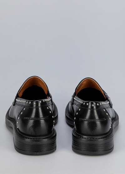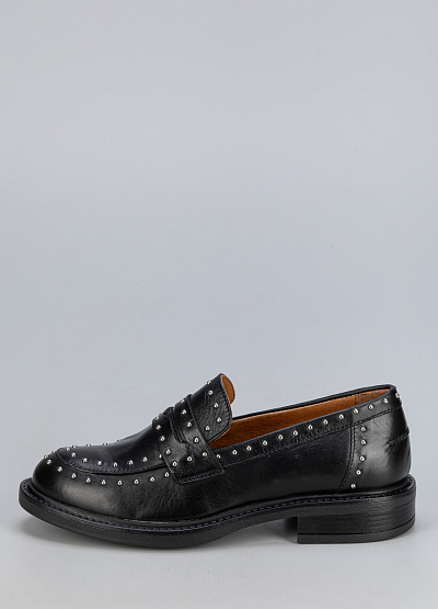 • Черные женские лоферы Creator — стильная модель с ярким акцентом, подчеркивающим индивидуальность. Выполнены из натуральной гладкой кожи, которая обеспечивает прочность и элегантный внешний вид. Металлические заклепки по всему периметру придают обуви современный характер и легкий рок-шик. Классическая конструкция без шнуровки делает модель удобной в носке и универсальной для разных образов.