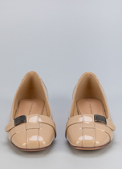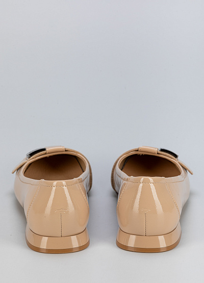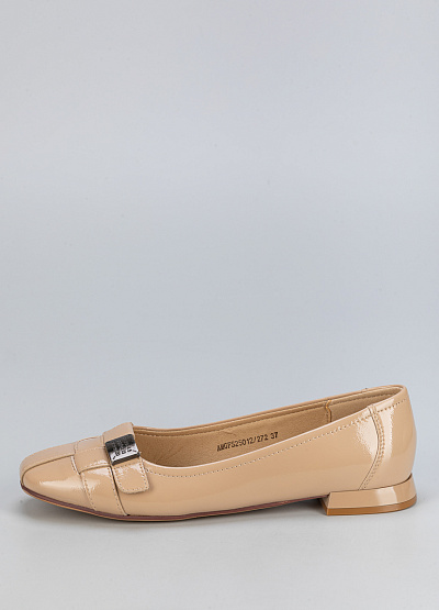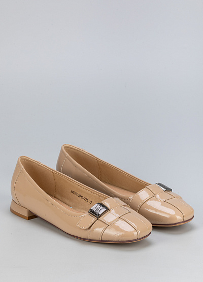 • Женские бежевые лакированные балетки из кожи – элегантный выбор для стильного повседневного образа. Благородный глянец, квадратный мыс и металлическая вставка на ремешке придают обуви утонченный вид. Небольшой каблук делает модель удобной для длительной носки.