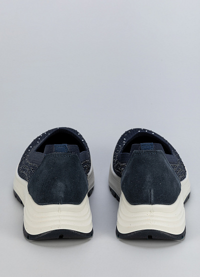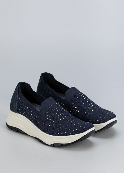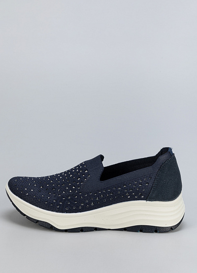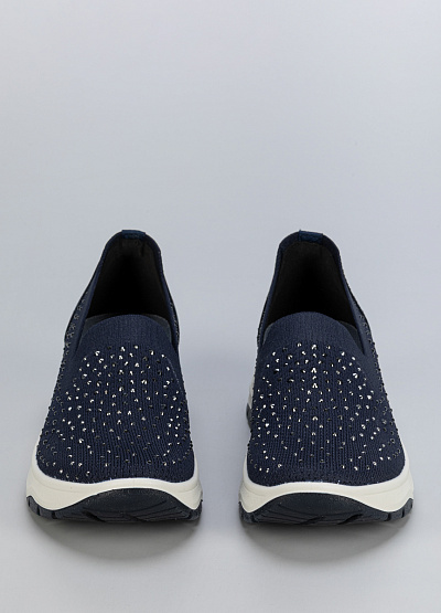 • Трикотажные женские темно-синие лоферы с декором из стразов для яркого повседневного образа.