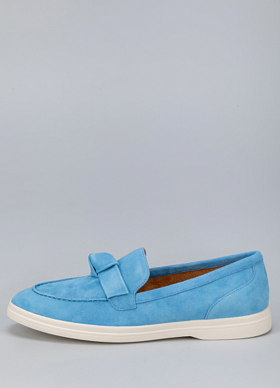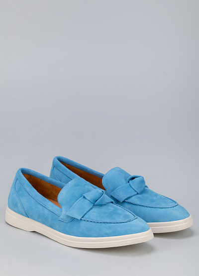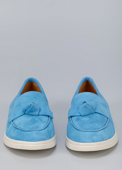 • Женские лоферы голубого цвета из натуральной замши от бренда Loretta Very. Модель с язычком дополнена ремешком на подъеме в виде узла. Эта модель поможет создать яркий образ. Они хорошо облегает стопу и подойдут для повседневной носки.