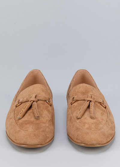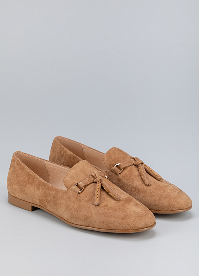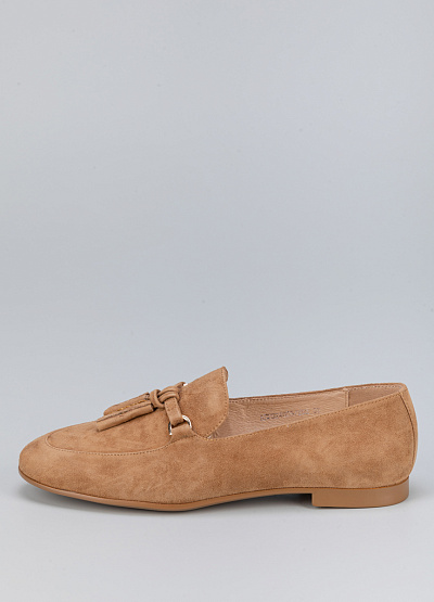 • Женские лоферы песочного цвета из натуральной замши от бренда Loretta Very. Модель с язычком дополнена декором на подъеме в виде кисточки. Эта модель поможет создать яркий образ за счет своей фурнитуры. Они хорошо облегает стопу и подойдут для повседневной носки.
