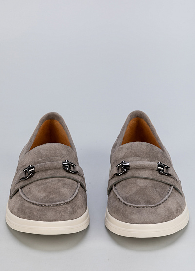 • Эти стильные женские лоферы из натуральной замши в сером цвете – идеальный выбор для женщин, которые ценят комфорт и элегантность. Лаконичный дизайн с металлическим декором придаёт обуви изысканный вид, а мягкая внутренняя подкладка обеспечивает максимальное удобство в течение всего дня.